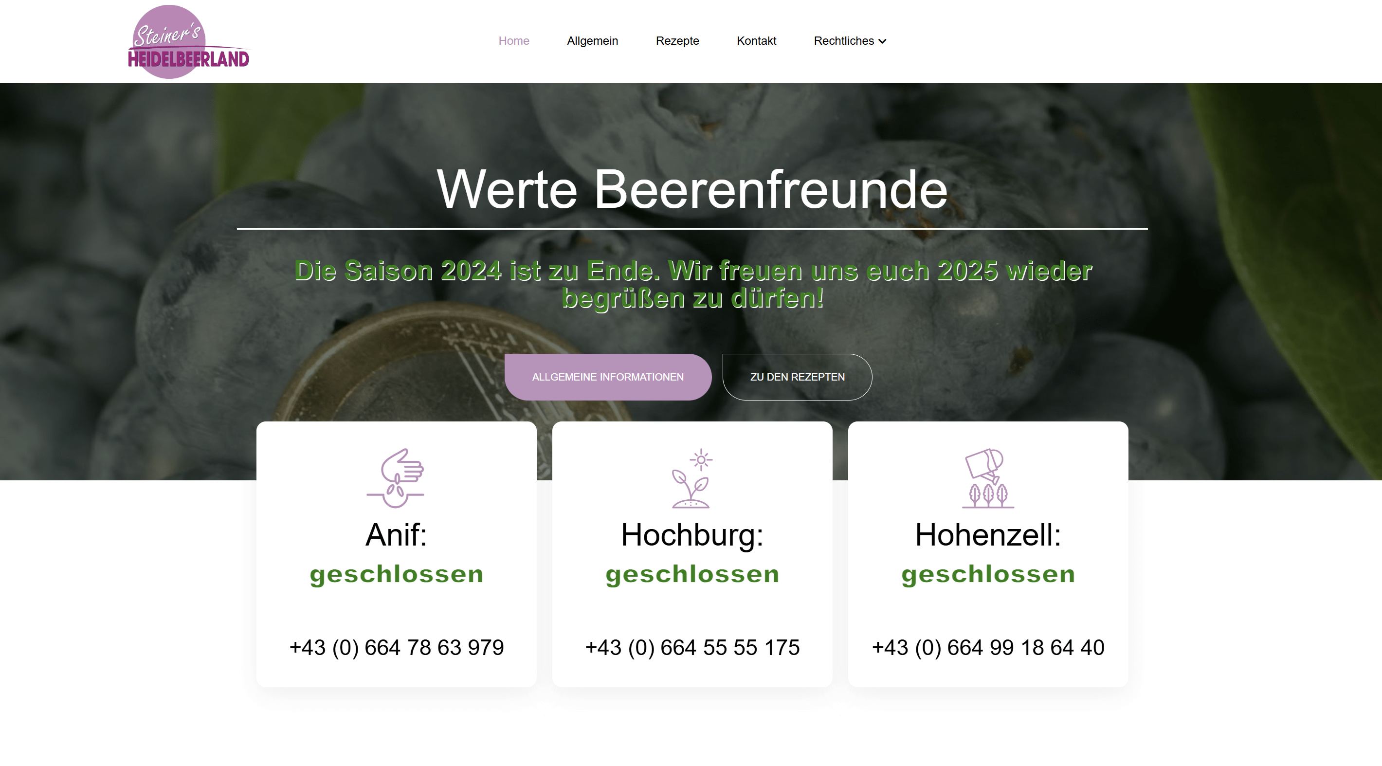 Für Heidelbeerland wurde eine moderne und benutzerfreundliche Website entwickelt, die Design und Funktionalität perfekt vereint.