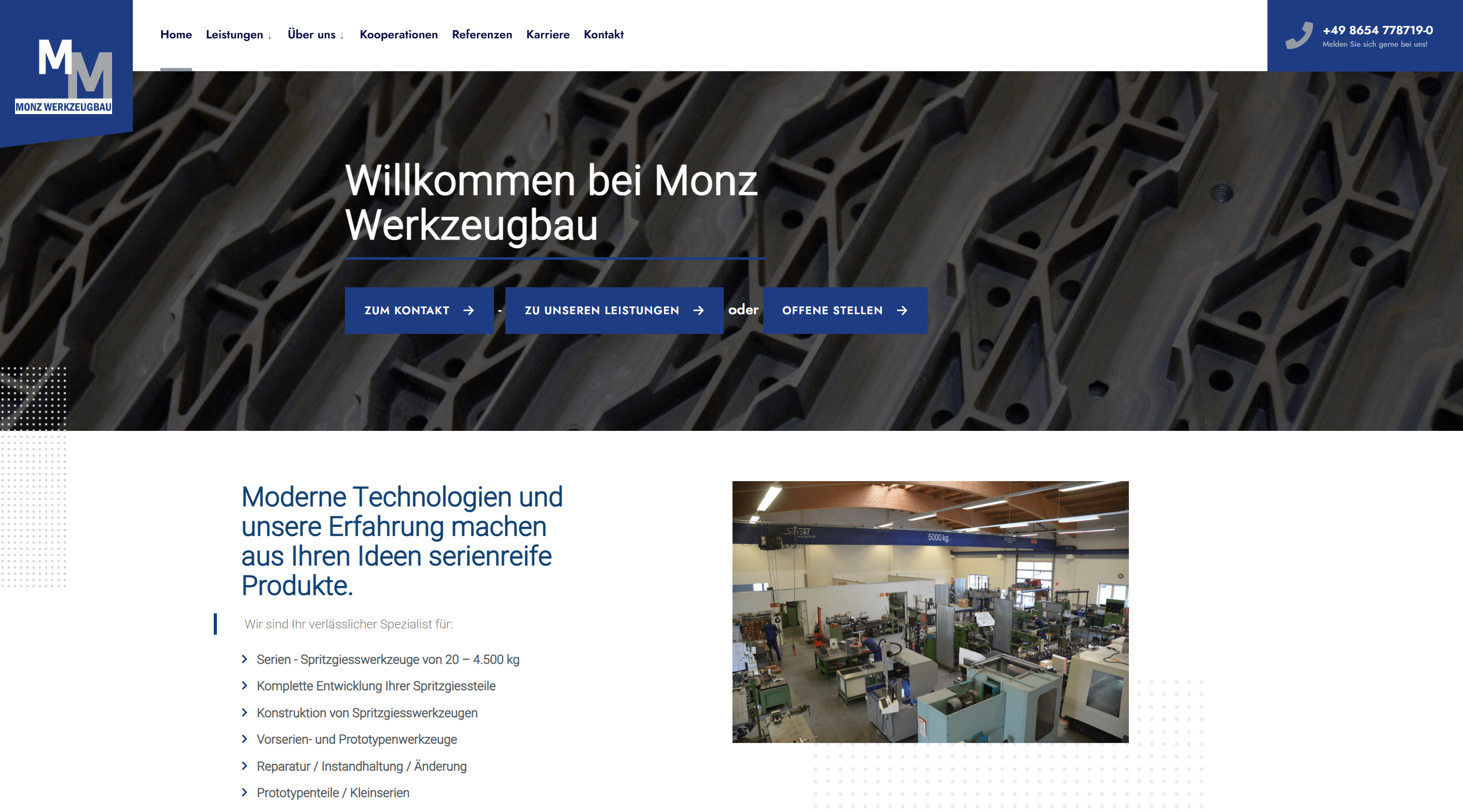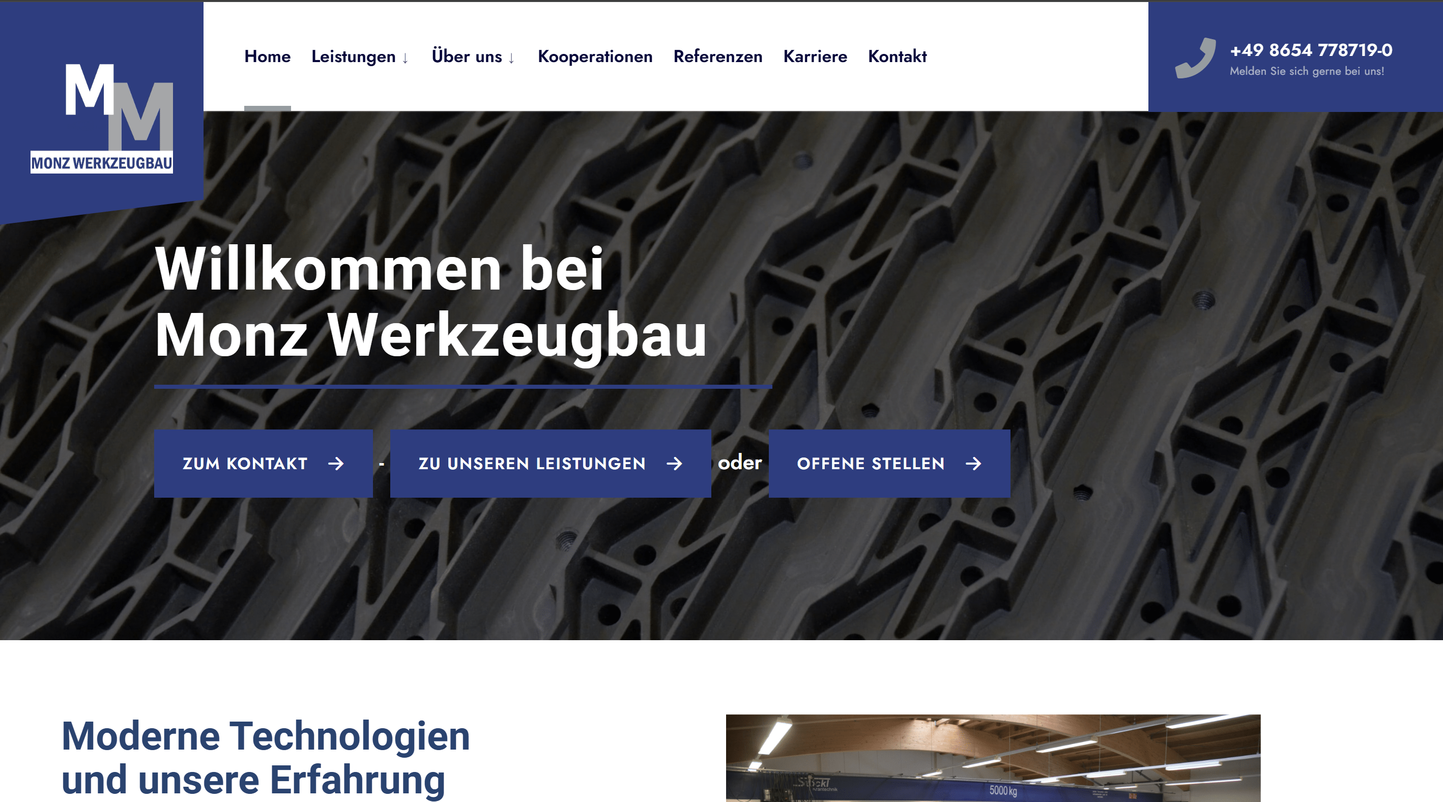 Für Monz Werkzeugbau wurde eine moderne und leistungsstarke Website entwickelt, die Funktionalität und Benutzerfreundlichkeit kombiniert.